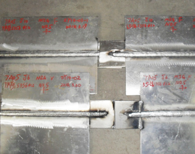鋁合金是高速船的主要結構材料,鋁合金可以設計出更合理的結構形式,減輕重量,提高結構強度。我公司自主研發(fā)的輕型自行門橋等產品均采用了7系高強度鋁合金,因此造船工藝迎來了重大的轉換期,選用合適的焊接方法和焊接工藝,有效控制鋁合金焊接變形及焊接接頭強度,公司工法科還為此研制了焊接氬氣保護裝置和焊接環(huán)境風向控制箱等科技含量很高的工裝。我們在接頭設計、焊接工藝參數等方面進行了大量的焊接試驗。經過一代一代的努力,積累豐富的數據和經驗,外觀成型和理化試驗后機械性均符合標準,已編制出準確的7系高強度鋁合金PWPS,形成正式的焊接試驗報告(WPQR),并制定出具體的現場焊接工藝,將形成工藝標準。