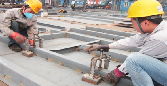 公司在薄板加工方便取得了不小的成就,在成型加工和焊接變形控制方便始終處于行業(yè)先進水平,為國防工業(yè)作出了貢獻,薄板片體拼板裝焊、九芯輥床矯正技術,焊接反變形技術等形成一套完整的加工工藝。